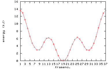 - At 180°, the absolute energy minimum is found. This is a staggered