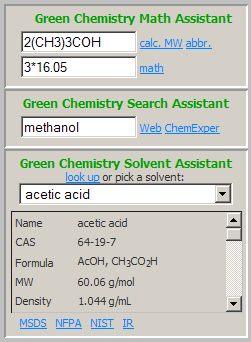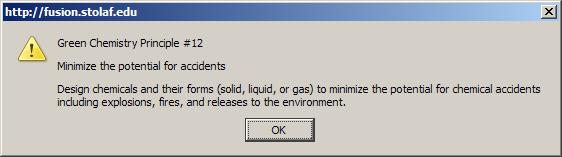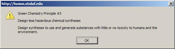 Summary Using the Green Chemistry Assistant, students as well as instructors and laboratory managers can do common calculations in relation to green chemistry quickly and efficiently. Though just another tool, the GCA is certainly much more. It is a true web application that has allowed us to dig far deeper into the concepts of green chemistry and to see much more clearly the interrelated steps in an overall chemical process than we have been able to do previously. The Green Chemistry Assistant is really no more than a tool, a glorified calculator. Nonetheless, its value goes far beyond showing students how to calculate atom economy. By its very organization, the GCA provides a basis for talking about chemical processes at the balanced chemical equation, experimental reaction, and overall process levels, suggesting means for reaction and process optimization, and even opening up the opportunity for experimentation in the area of green chemistry. By providing links to chemical safety-related databases, including MSDS, NFPA, and toxicity information, students as well as instructors are empowered to design better, more efficient, less toxic, less wasteful chemical processes for use in the undergraduate chemistry laboratory. Acknowledgments I am indebted to all the many undergraduates who have put up with us during the early development phase of the Green Chemistry Assistant. I particularly wish to thank Paul Campbell, St. Olaf '06, who worked diligently to test and retest and further test the interface during the summer of 2005. The idea behind the Green Chemistry Assistant started with an effort to develop the Green Chemistry Expert System (GCES) into more student-friendly form. Mank thanks go to Rich Engler, US EPA, who has been intrumental in working with us in that regard. Dan Beach, St. Olaf IT staff, was very helpful in our setting up the ColdFusion side of the operation. In addition, many thanks are due to Irv Levy, Julie Haack, Gary Spessard, and Marc Klingshirn for their helpful discussions and unwavering commitment to green chemistry. This work was supported by a very generous grant by the W. M. Keck Foundation. |