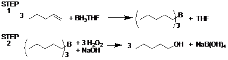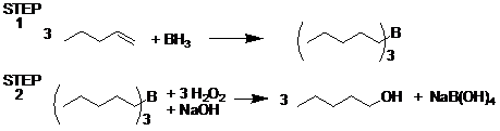 I suggest that inclusion of triethylamine is reasonable and defensible. Yet the original account describing atom economy chooses the first of these analyses. Who is right? Perhaps our thinking along these lines needs to evolve. Perhaps what we are seeing here is the difference between thinking in terms of just a single reaction (early green chemistry) and thinking in terms of an overall process. From a reaction point of view, maybe we can ignore the triethylamine; but from a process point of view, how can we ignore the fact that our coproduct HCl takes with it a whole mole of triethylamine for every mole of benzyl tosylate produced? The Complication of Multiple Process Steps Right off the bat, when we started to work with actual experiments students were doing in lab, we realized that the typical processes carried out in the organic lab by students involve more than one reaction, with more than one balanced chemical equation. In trying to conceptualize an actual lab experiment in terms of equation, reaction, and process, we realized that we needed to be much more explicit. We needed process steps. Another example: hydroboration/oxidation of an alkene to produce an alcohol.