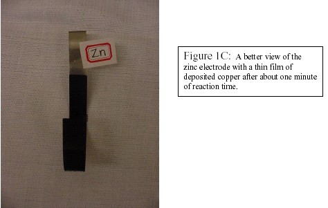 Figure 1C. A better view of the zinc electrode with a thin film of deposited copper after about one minute of reaction time.
