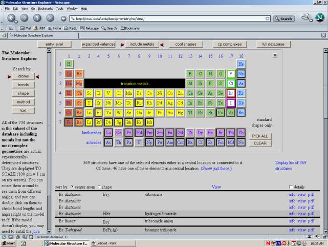 One way to use the website to teach periodic trends is to have students do some exploration of the database (probably using one of the abbreviated databases such as the "include metals" version) first. You can ask them to pay special attention to, or even record on a table, bond lengths or angles of molecules composed of a single period or row, and then discuss the trends they come up with in class or you can pick out specific molecules for them to look at if you want to restrict their exploration a little more. Having students make molecular origami models of some molecules makes the trends extremely obvious because they can set the molecules next to one another and easily compare size and shape.