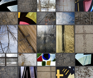 | Emilie Bouvier '12 created this collage — which she says demonstrates that "we run into crosses everywhere we go" — as part of the Art of the Cross exhibit at Prince of Peace Lutheran Church. |
