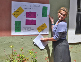 | Moira Wood '13 poses with a poster shortly before delivering a presentation on AIDS in Latin America while studying in Guatemala this semester. Wood designed her own biomedical anthropology major to synthesize her interests in medicine, history, sociology, and public health. |