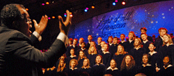 | Anton Armstrong '78 leads the St. Olaf Choir during last year's Christmas Festival. |