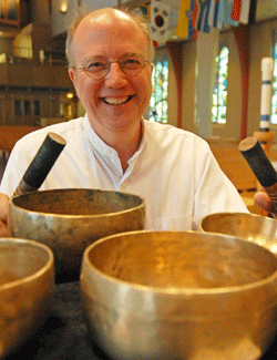 Playing the gongs, used by meditating Buddhist monks for more than 2,500 years, has been challenging. "The angle at which you have to hit them for a good sound is awkward and the 'targets' are hard to distinguish from each other," he says. But it's worth the effort. "The gongs are used for meditation, so the sounds they add make for truly unique music." Hagedorn also plays vibraphone in the piece.