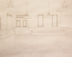 The final product is a series of drawings and explications about her ideal plan for the depot. It would mainly function as a public exhibition gallery and café, drawing the community together much like it did in the late 1800s when it was first built. She has designed both the exterior and interior elements to restore the original character of the train station, taking into account the space, function, sustainability, and history of the site.