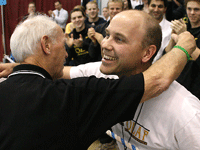 | Dave (left) and Robert '87 Hauck embrace during last year's NCAA championships. |