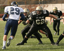 | "In my 17 years of coaching, John [No. 62] is one of the finest examples of a student-athlete that I have ever had the joy to coach," says St. Olaf Football Coach Jerry Olszewski. |