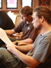 Each student in Tom Pope's screenwriting class will craft the first half of a script for a feature-length film this semester. Through collaborative workshop sessions and advice from an instructor with decades of screenwriting experience, they're learning to think in new ways. |
