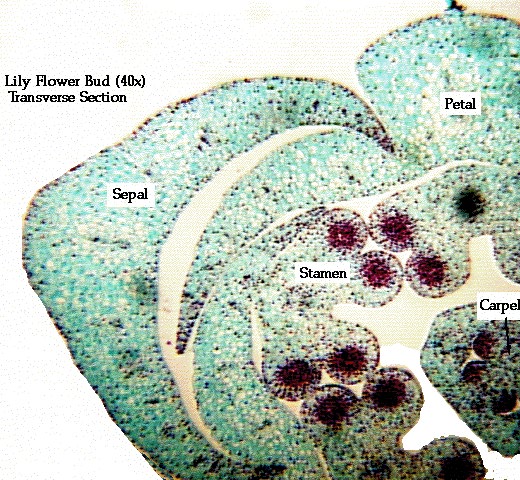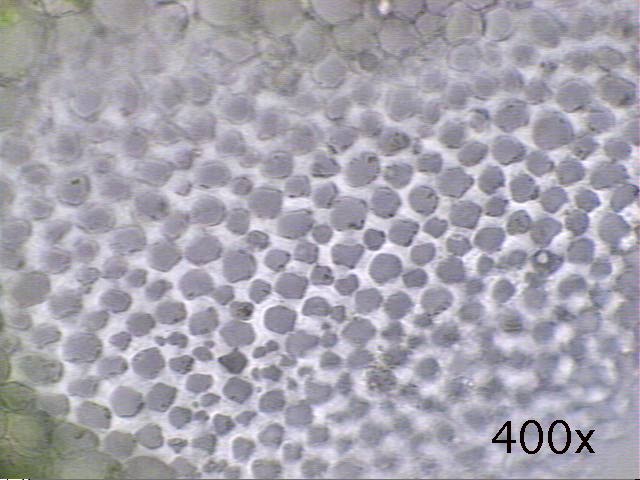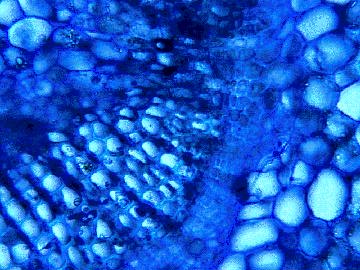 Student free-hand section of Helianthus stem, stained with Toluidine Blue-O.