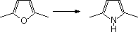 59 A conversion of 2,5-dimethylfuran into 2,5-dimethylpyrrole (see equation) may be accomplished in two steps. i) hydrolysis of the furan in aqueous acid; ii) heating the hydrolysis product with excess ammonium carbonate What is the intermediate hydrolysis product used in the second step? A) 2,5-hexanedione B) 3,4-hexanedione C) hexanedial D) 2,5-dimethylcyclopentanone