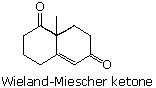 52 The Wieland-Miescher ketone is an important synthetic intermediate. Its formula is shown below. What starting materials would be suitable for preparing this compound by a combination of Michael and aldol reactions? A) 4-methyl-2-cyclohexen-1-one and 3-butenal B) 2-methylcyclohexane-1,3-dione and 3-buten-2-one C) 2-methyl-2-vinyl-3-cyclohexen-1-one and acetaldehyde D) 2-methyl-2-cyclohexen-1-one and 1,4-dichlorobutan-2-one