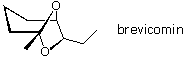 57 The formula of brevicomin, a pheremone of the western pine beetle, is shown below. What open chain ketodiol would close to this bicyclic acetal? (ignore stereoisomer issues) A) 7,8-dihydroxynonan-3-one B) 6,7-dihydroxynonan-3-one C) 7,8-dihydroxynonan-2-one D) 6,7-dihydroxynonan-2-one