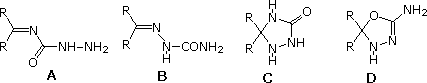 60 The reagent semicarbazide, NH2CONHNH2, reacts with simple aldehydes and ketones (R2C=O) forming crystalline derivatives called semicarbazones. Which of the following represents the structure of a semicarbazone?