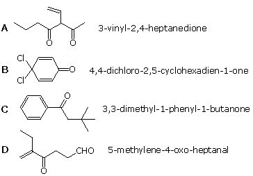 10 Which of the following compounds exchanges the largest number of hydrogens for deuterium when treated with KOD in D2O? A) 3-methyl-1,2-cycloheptanedione B) 2-methyl-1,3-cycloheptanedione C) 5-methyl-1,3-cycloheptanedione D) 6-methyl-1,4-cycloheptanedione