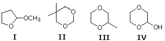 6 Which of the following may be classified as an acetal? A) I & II B) III & IV C) only IV D) all but IV