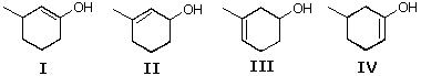 8 Which of the following are enol tautomers of 3-methylcyclohexanone? A) I & II B) I & IV C) II & III D) only I