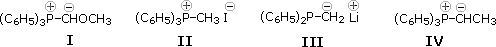 22 The Wittig reaction takes place between a carbonyl compound and a phosphorus ylid. Which of the following represents the dipolar contributor to such an ylide? A) I & II B) II only C) III only D) I & IV