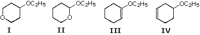 51 Formulas for four ethyl ethers are drawn below. Two are cleaved by aqueous acid much more easily than the other two. Which ethers are more easily hydrolyzed? A) I and II B) II and III C) III and IV D) I and IV