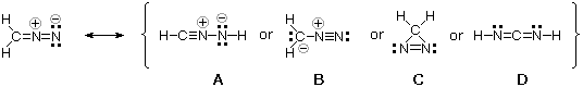 31 A Lewis formula for diazomethane, CH2N2, is shown on the left below.