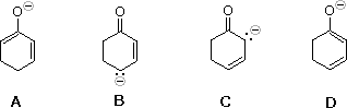 40 Which of the following structures is not a resonance contributor to the hybrid defined by the other three?