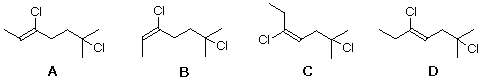 12 Which of the following represents (E)-3,6-dichloro-6-methyl-3-heptene?