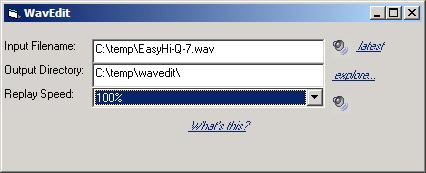 WavEdit is a little program I wrote that just changes the timing information for a WAV file so that it plays back at a different speed. I use the program EasyHi-Q Recorder (Roemer Software) to record BBC RadioMundo off the web as a WAV file, putting it in C:\temp. Then I use WaveEdit to change the timing and play it back more slowly. You can just drag a WAV file to this form if you want, or you can type the input file name. I use the free version of RealPlayer for playback of WAV files.