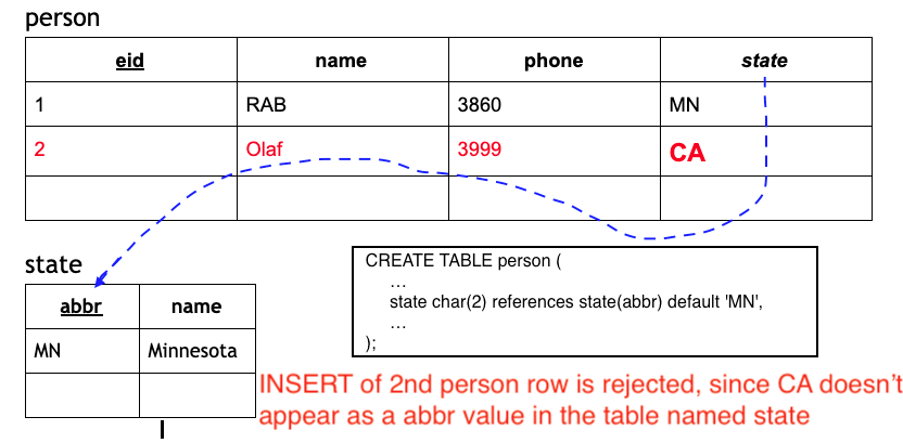 With constraints, can enforce data integrity and avoid relationshiops that shouldn't be permitted