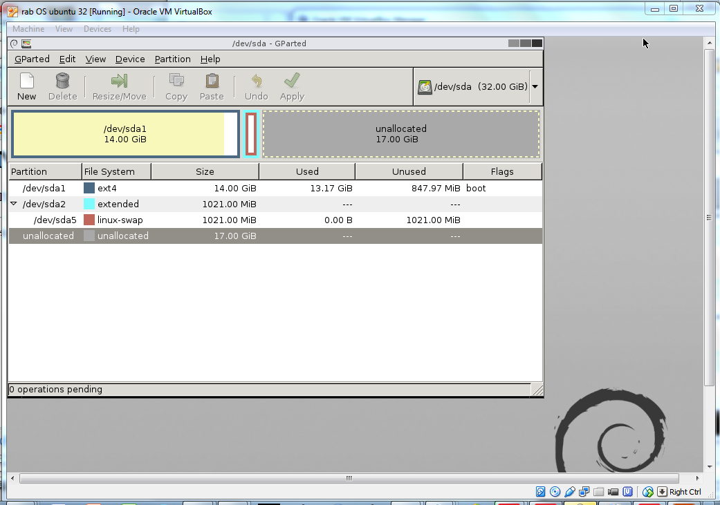 Note:gpartedoperates by preparing a "to-do" list of pending partitions before making any change in your disk. This gives you an opportunity to undo any or all of those pending operations before performing any actions that cannot be undone.Select the