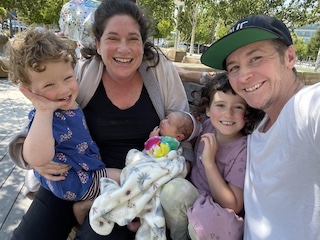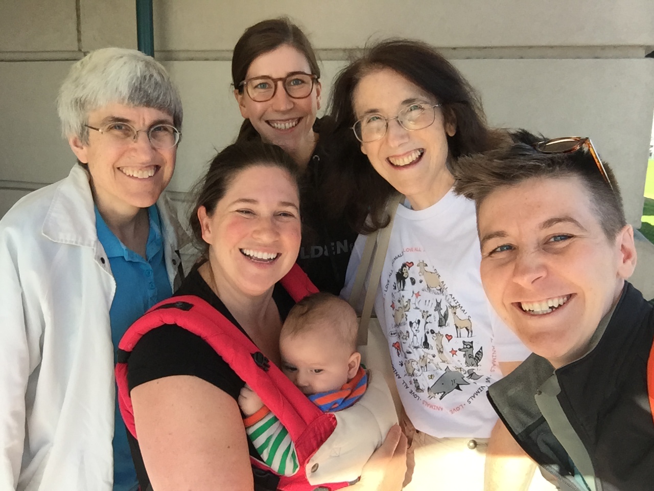 In her spare time Groton rides her bike, plays the piano, composes music, and sings in a Renaissance chamber choir. Besides being able to get lost virtually anywhere, her greatest claim to fame is never having learned how to parallel park. The photo above (June, 2015) shows her in Ostia Antica co-leading the Great Conversation's 35th anniversary tour to Greece and Italy. The photo at left (July, 2024) shows her niece's family in San Francisco welcoming a new baby, Wildflower Moon!